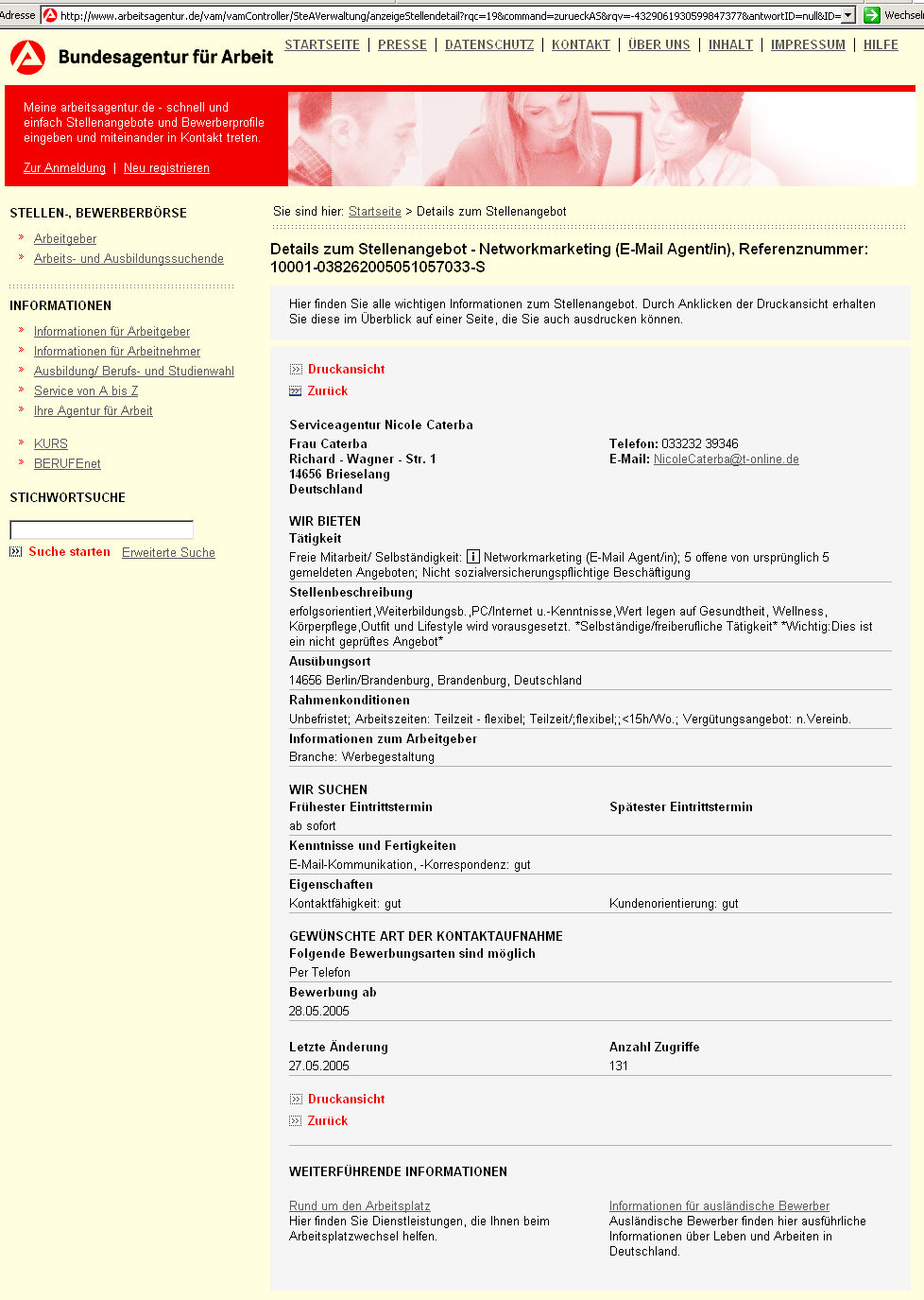 Ich habe ebenfalls durch die AA in Frankfurt diese dubiosen Stellenangebote